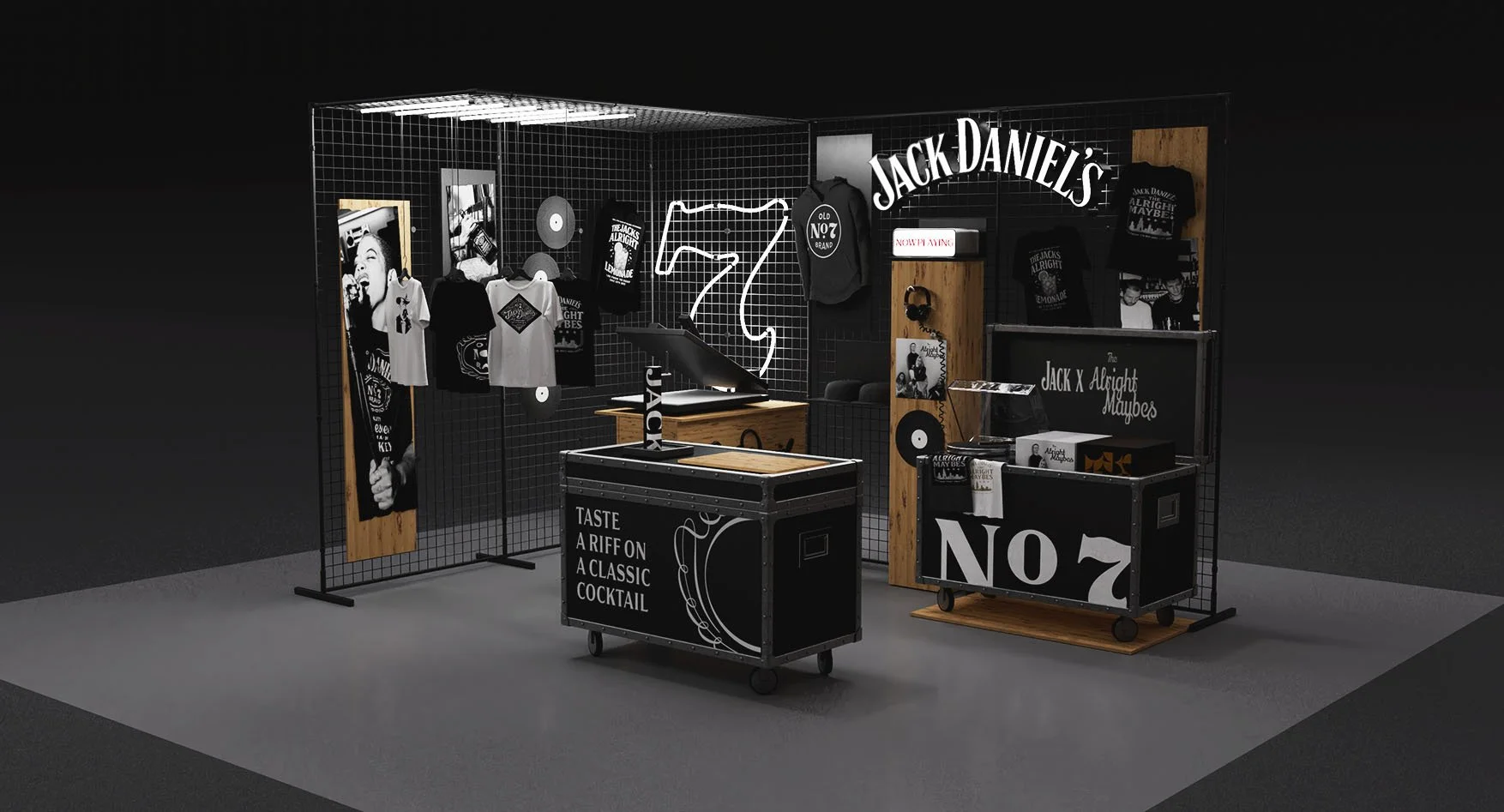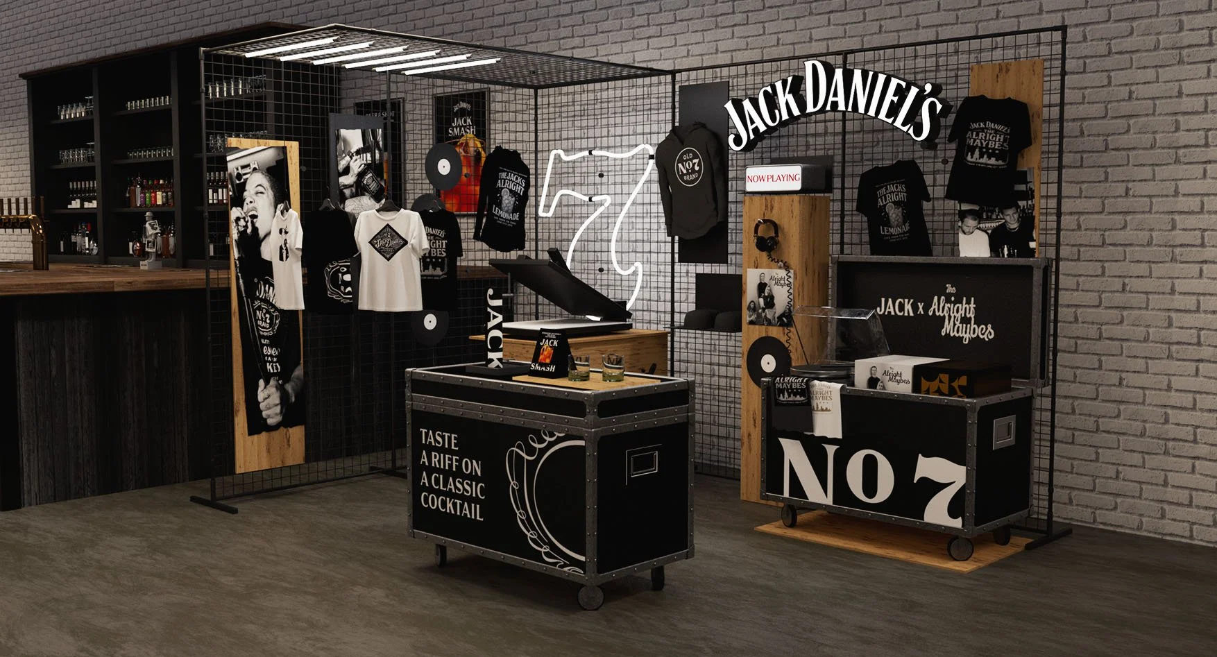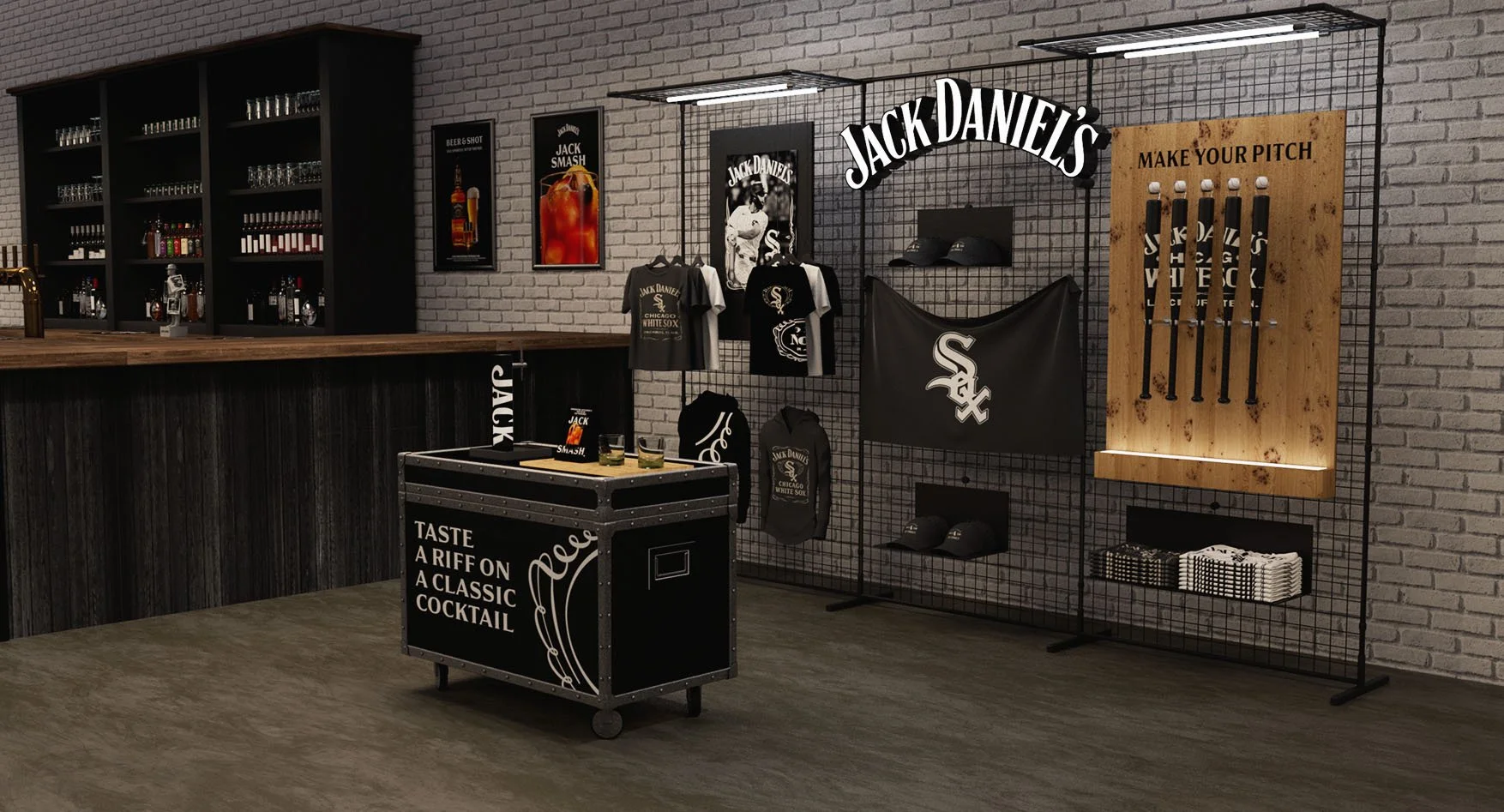 US bars are synonymous with sports and music. Local bands pitch up to play and crowds of friends gather to watch the Super Bowl or World Series. That inspired us to create scalable in-bar merch stands often seen at sports and music venues to introduce Jack to a new crowd.