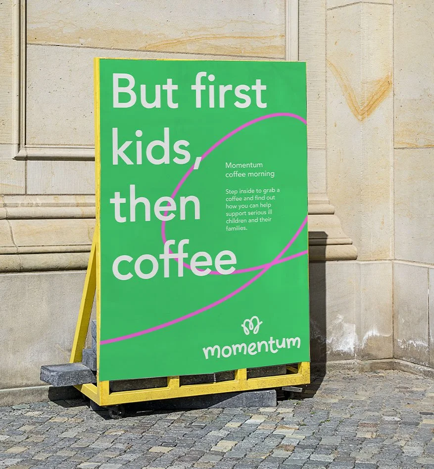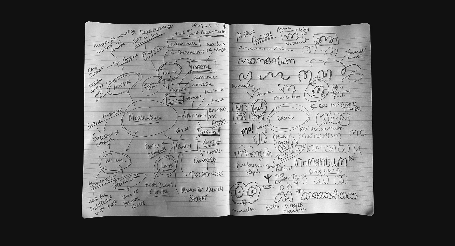 Early development focused on a visual expression of momentum and developing a look for Mo, the charity’s mascot.