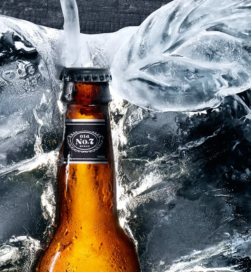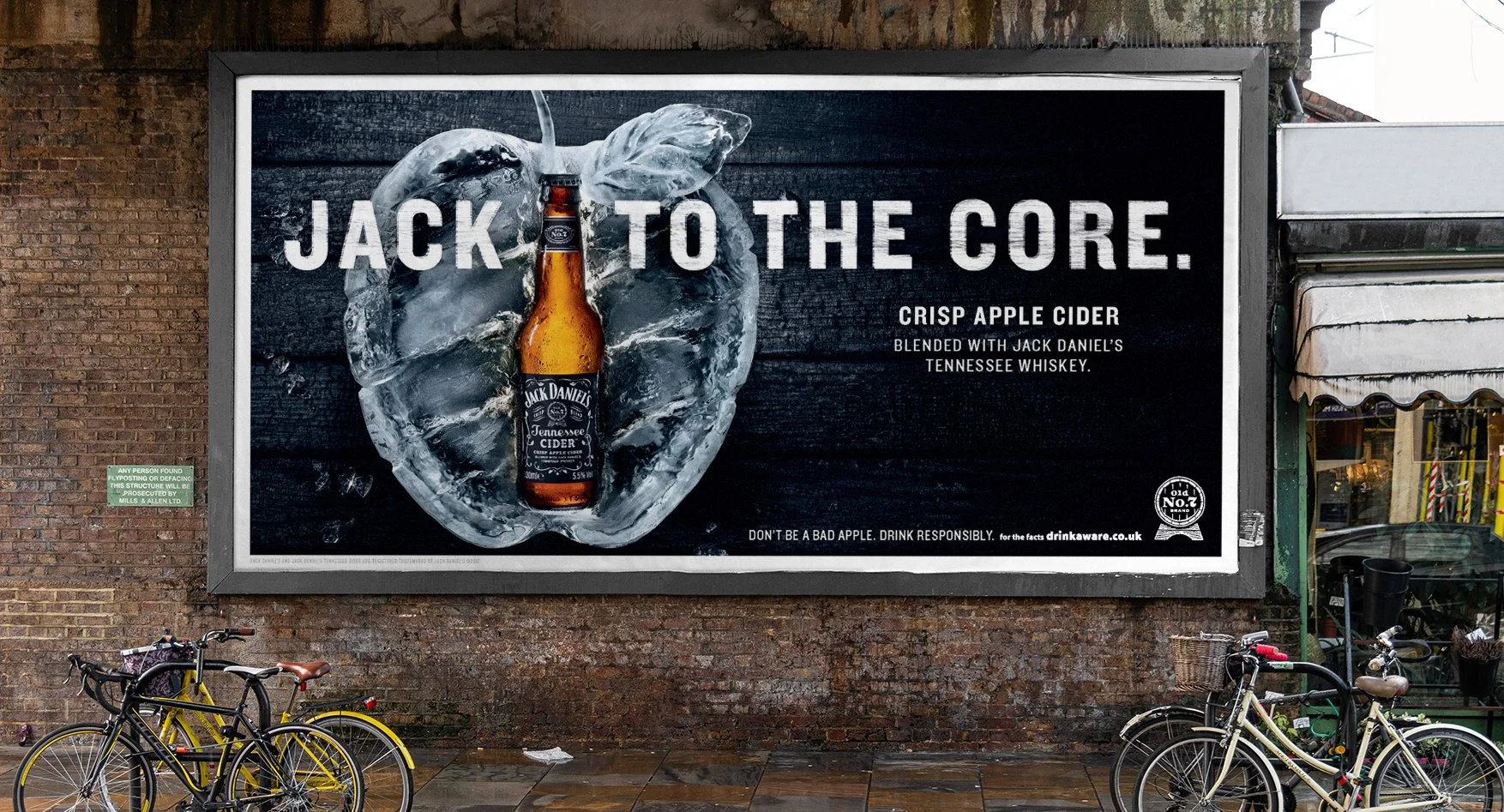 A creative team developed ‘Jack to the Core’ as the concept and I came on board to develop the campaigns design language. The design stage began with exploring two ways in, the bottle at the core of a wooden apple (too expected) or at the core of an ice apple (more Jack). Both aimed at expressing craft and hinting at flavour. The ice design was chosen. We then worked on developing the typography, nailing the styling and commissioning an ice sculpture to create the final apple.